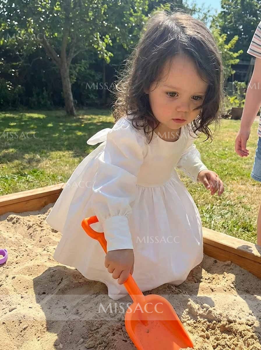 A-line tulle flower girl dresses with bow, perfect for weddings and special events, crafted from soft and airy fabric for a touch of elegance.