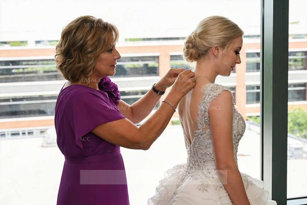 I bought this dress for my daughter's beach wedding and it fit surprisingly well! The satin feels super soft against the skin and doesn't look cheap at all. I especially loved the little floral appliques on the side—they added just the right touch of elegance without being too over the top. I got so many compliments from the guests all night long.