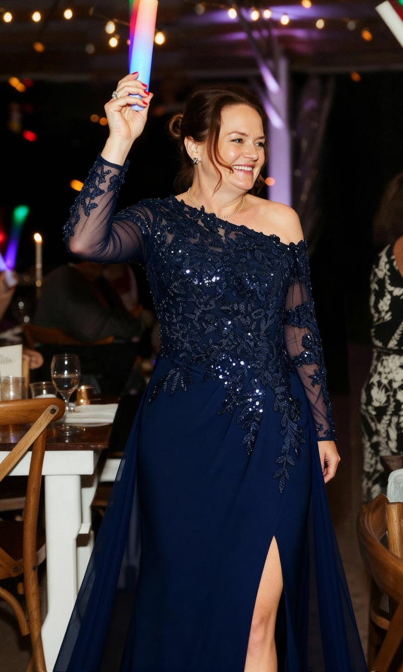 I got this dress for my daughter's graduation ceremony, and it was a big hit! It’s a very pretty style, and the material feels pretty decent for the price. The A-line cut is super forgiving, which I appreciate. The split is quite high, so I did a little test walk around the house and it feels secure enough. I might add a small stitch just for extra peace of mind, but it's not strictly necessary. It's definitely a dress that makes you feel put-together. I'd recommend it for any special occasion where you want to look nice without being over the top.