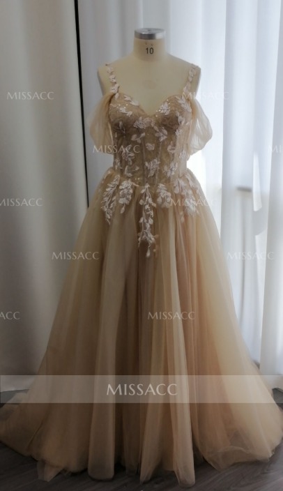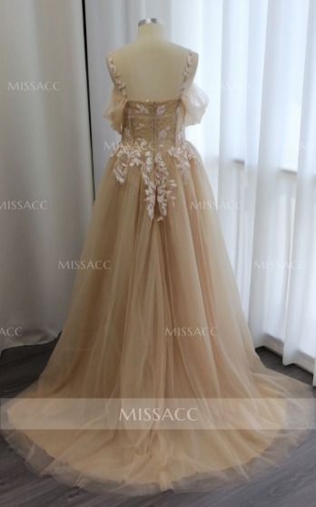 Just got this off-the-shoulder dress and it's absolutely perfect for my upcoming wedding! The tulle and lace feel so soft, and the appliques add just the right touch of elegance. I can't wait to rock it on the big day!