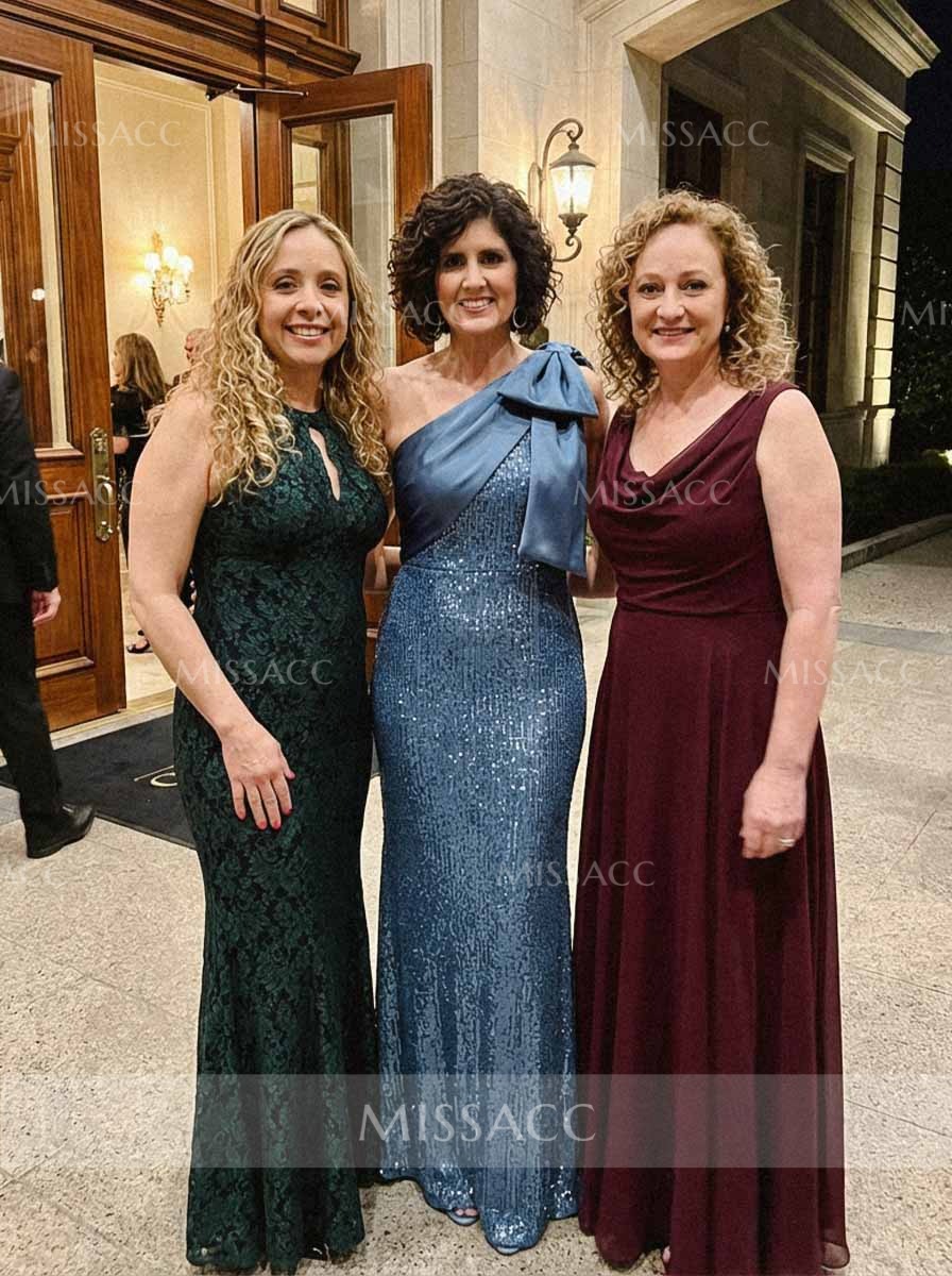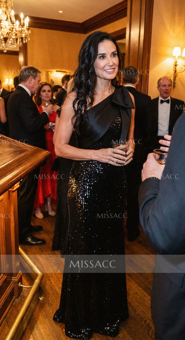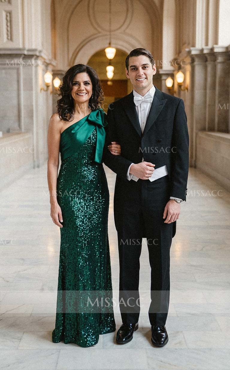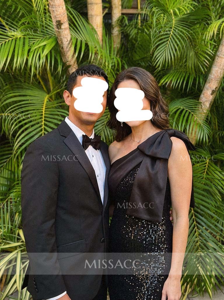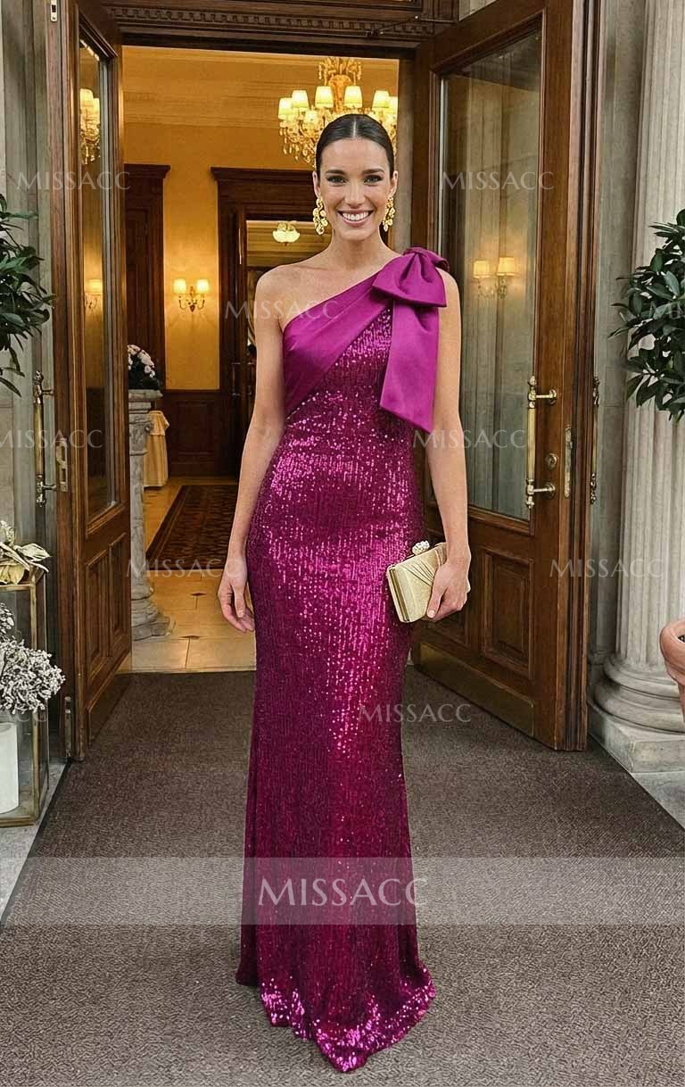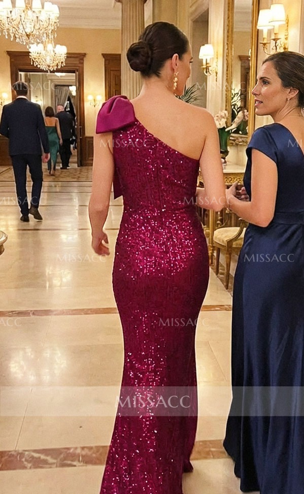 Sparkling and charming, this single-shoulder satin sequined evening dress is specially designed for luxurious parties. The unique bow decoration seamlessly combines with the tailored silhouette, making you the center of attention at formal occasions. Purchase this enchanting ball gown now.