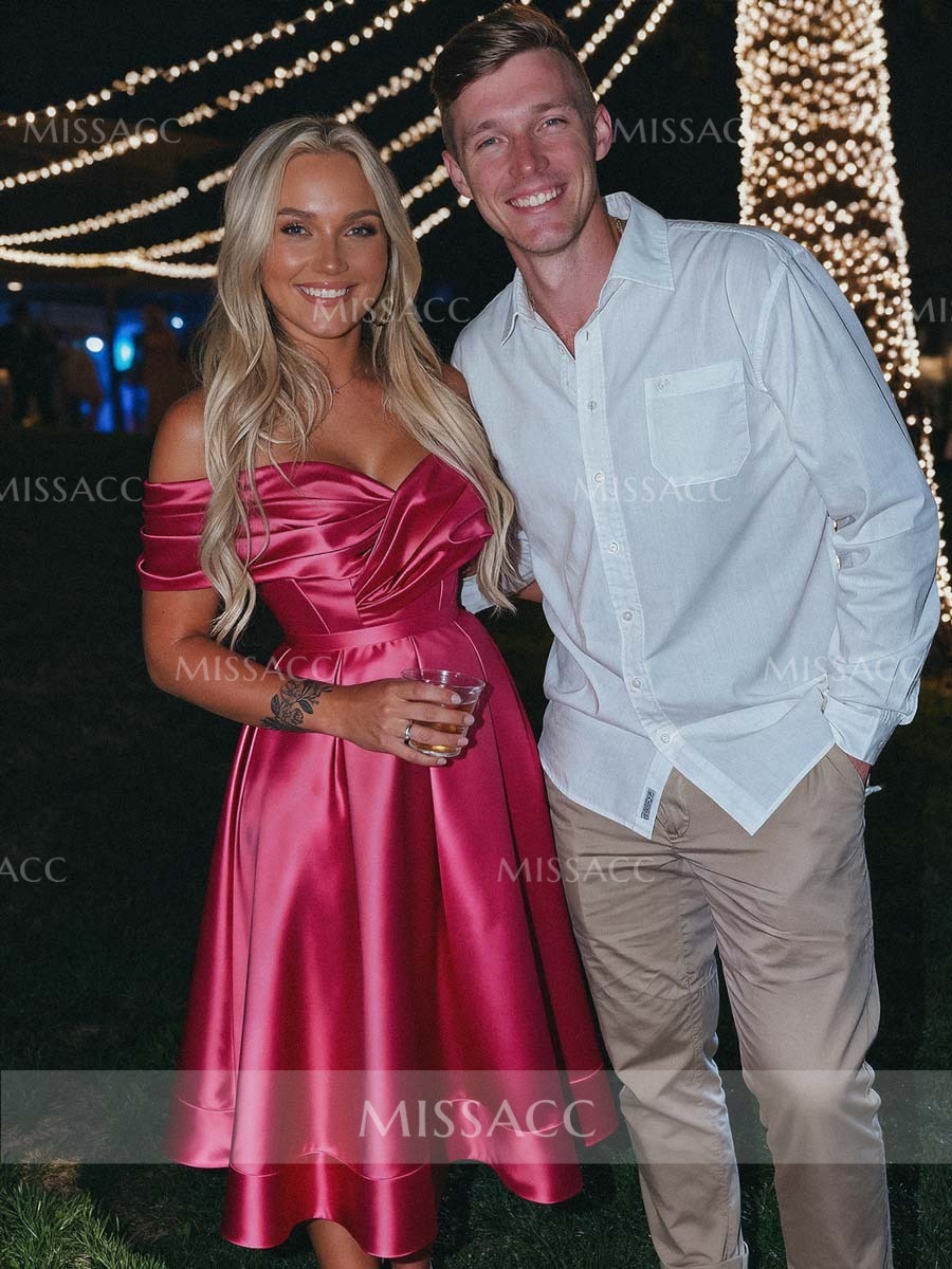 Elegant Halter Sleeveless A-Line Tea-Length Lace/Satin Cocktail Dresses With Pockets/Back Hole