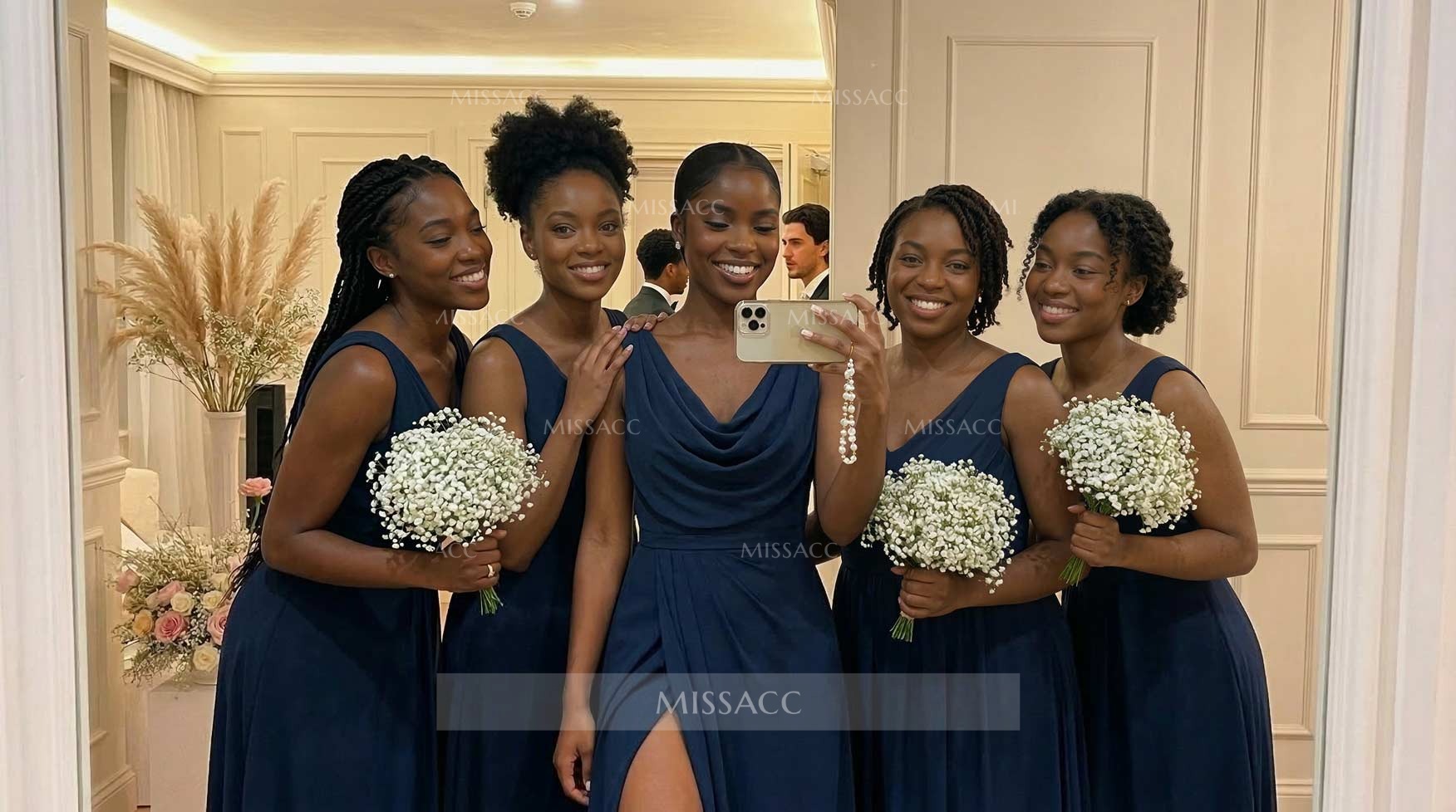 Discover our chic lace A-line slit bridesmaid dresses, crafted with premium fabric for a flattering fit. Perfect for weddings and special events, these dresses showcase a modern, elegant silhouette.