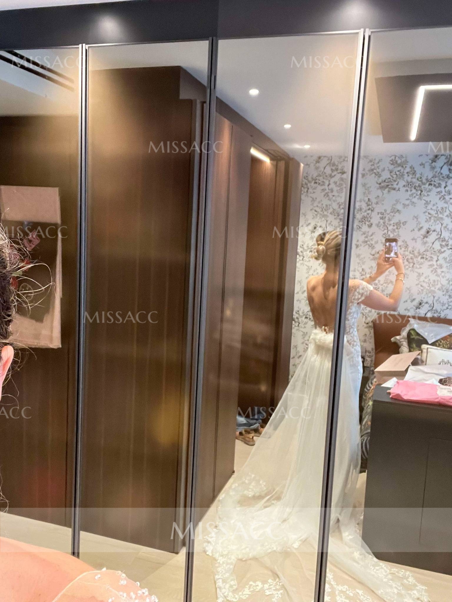 Elegant Lace Illusion Neck Open Back Royal Chiffon/Tulle Wedding Dresses With Flower(s)