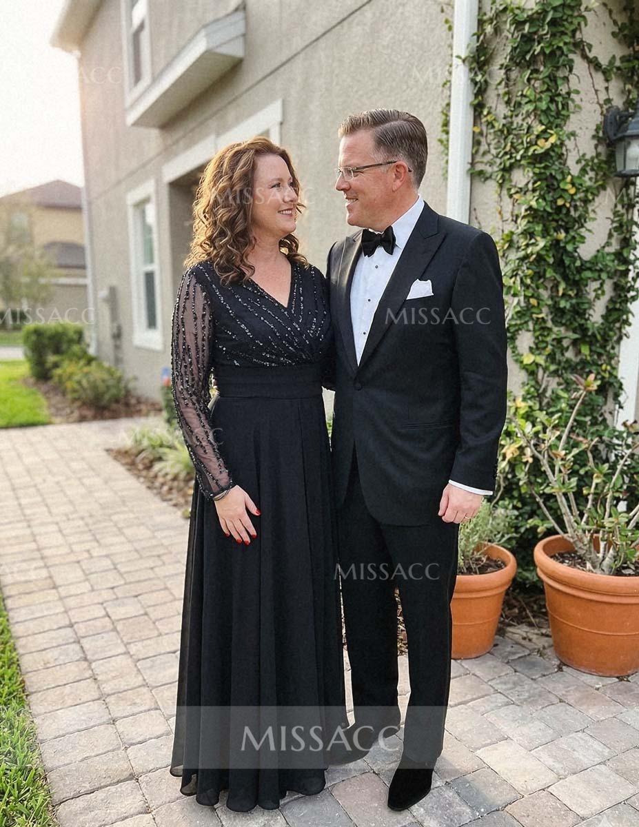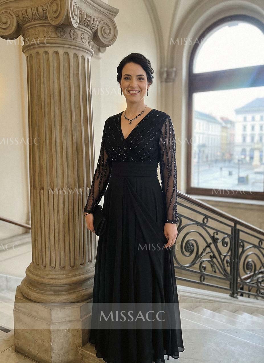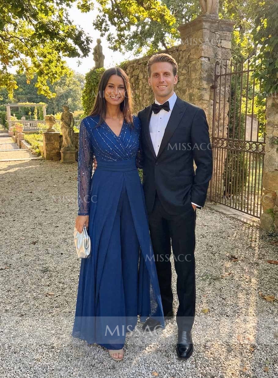 Stylish Jumpsuit with V-neck Chiffon Tulle and Sequins, perfect for evening events. Luxurious fabric, elegant design, ideal for a glamorous look.