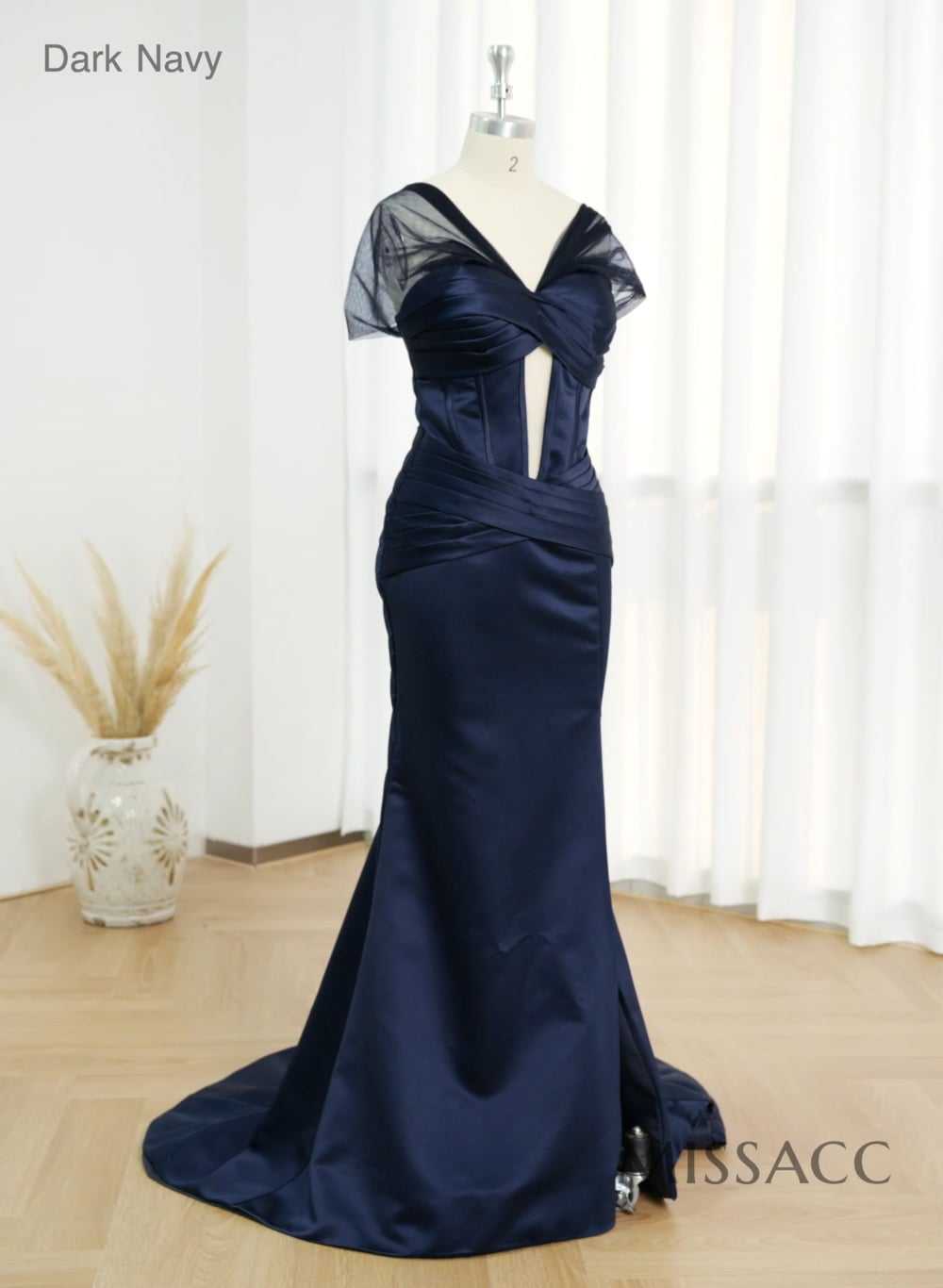 I ordered the trumpet v-neck dress and it arrived super fast! The matte satin finish is a really nice touch, and the dress drapes beautifully. I also like that it has sleeves, which offer a bit more coverage. It's a tad snug around the waist, but overall, I'm really happy with my purchase.
