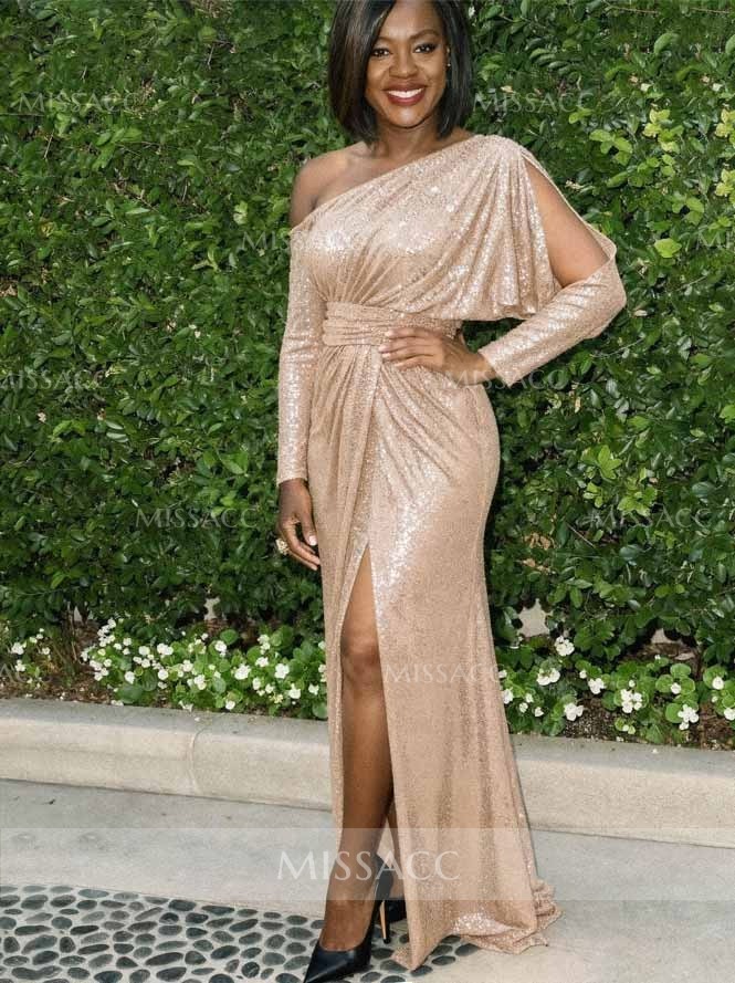 Stunning sequined mermaid evening dress, crafted with luxurious long sleeves and a flattering trumpet silhouette for a dazzling look at any special event.