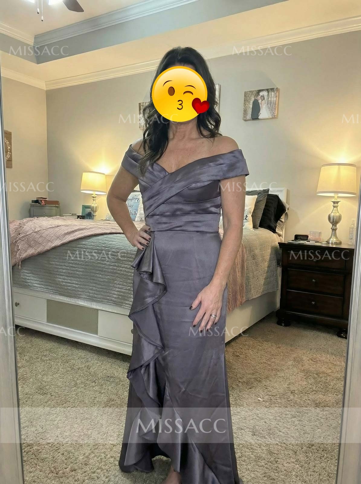 Sheath/Column Off-The-Shoulder Satin Evening Dresses With Sweeping Side Drape