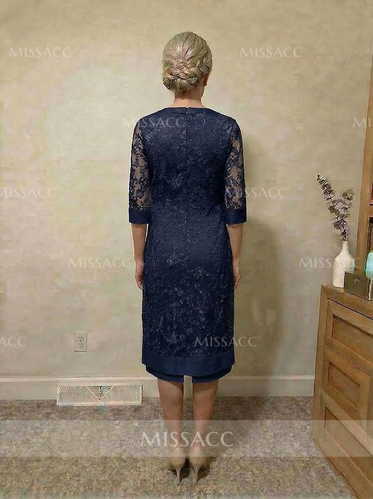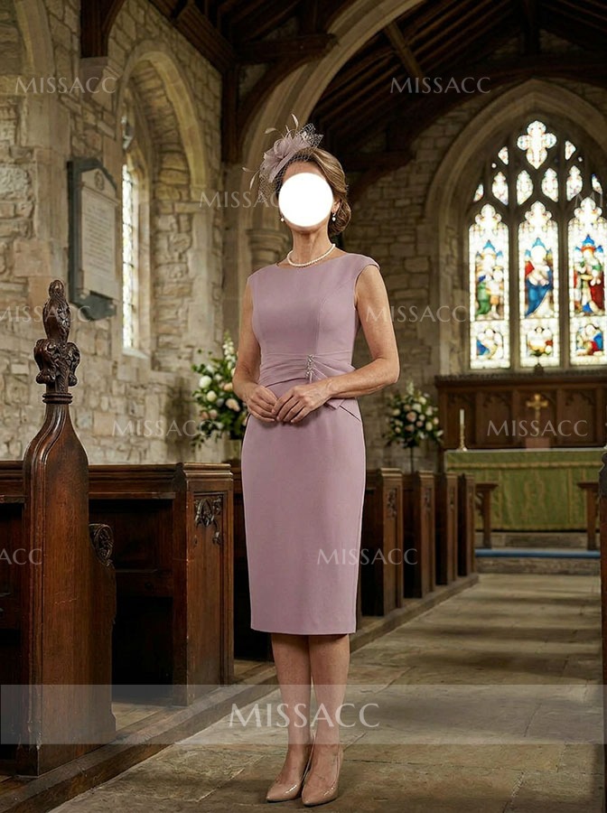 Elegant Sheath Column Dress with Chiffon Overlay and Scoops Neck, perfect for mother of the bride for a sophisticated wedding look.