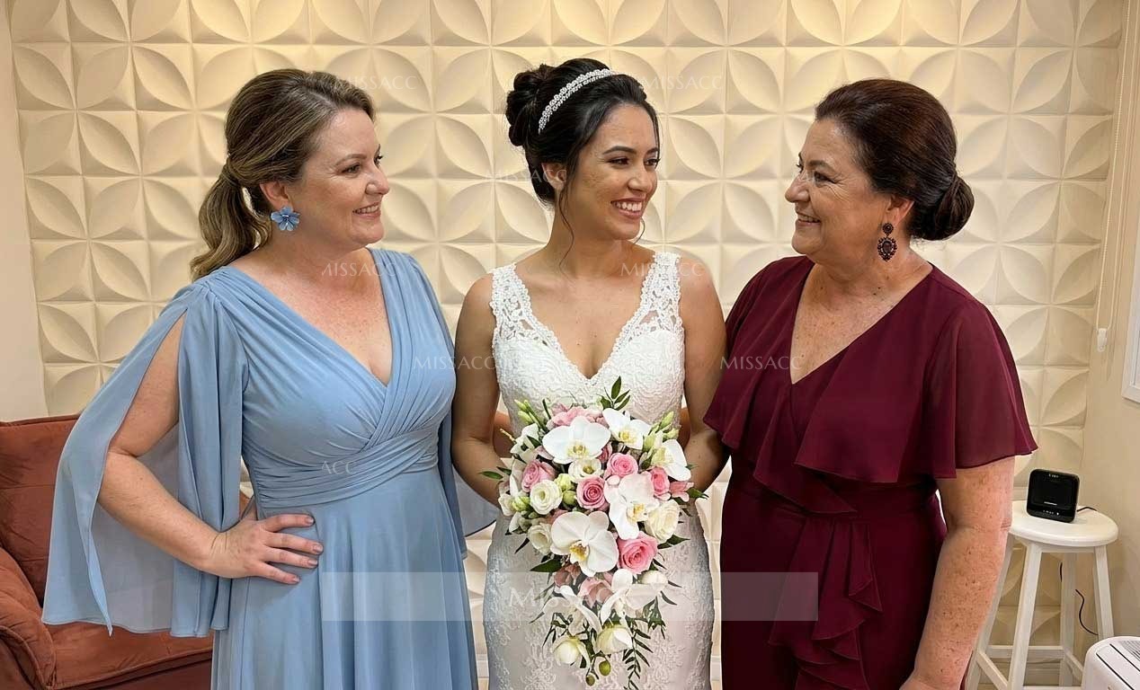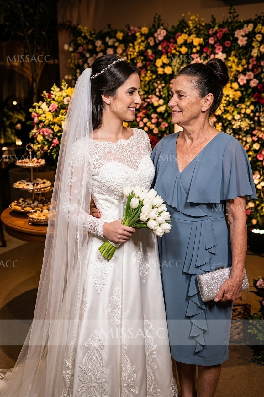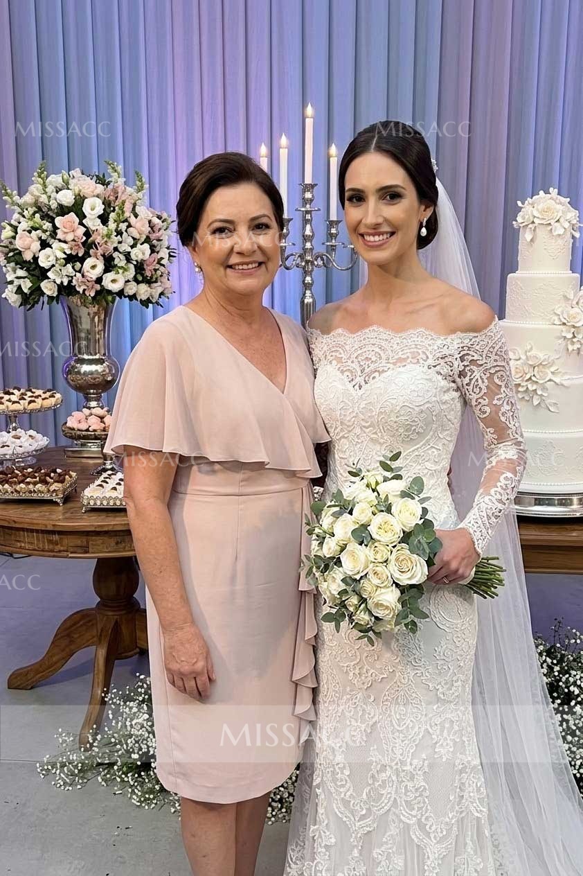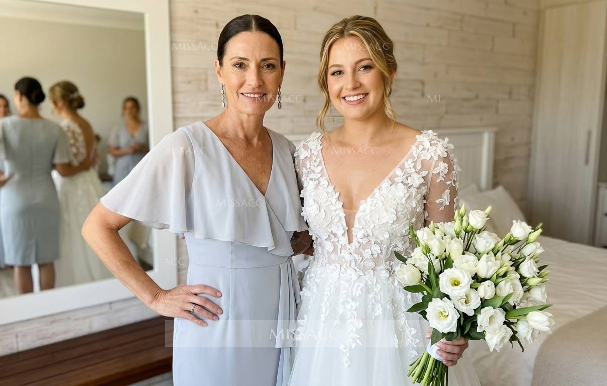 I was super nervous about ordering a dress online for such a big day, but this actually worked out great. My daughter got married last weekend and the v-neck style was super flattering without showing too much. The chiffon material is pretty soft. I had to get the hem taken up a couple of inches because I wore flats, but totally worth it. Got lots of compliments from the family!